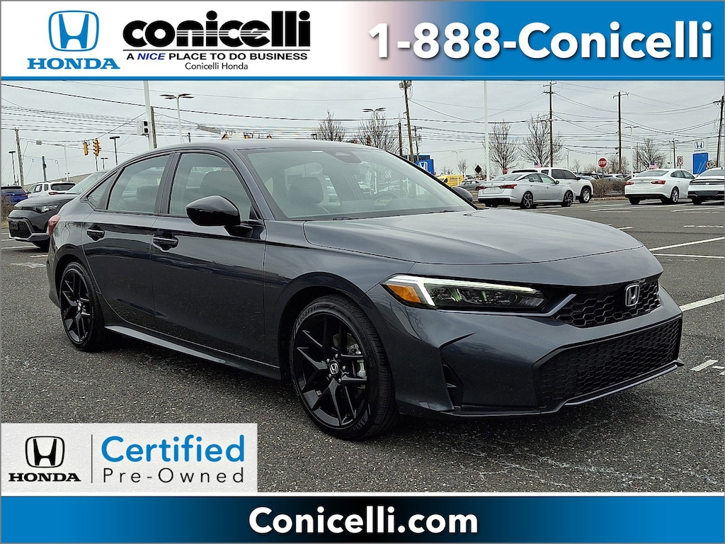 This Honda Civic Sedan Hybrid is Certified Preowned! CARFAX 1-Owner! This 2025 Honda Civic Sedan Hybrid Sport, has a great Sonic exterior, and a clean Black interior! -Only 8,387 miles which is low for a 2025 ! This model has many valuable options -Synthetic Leather Seats -Backup Camera -Bluetooth -Aux. Audio Input -Heated Front Seats -Heated Mirrors -Auto Climate Control -High Intensity Headlights -Automatic Headlights -Front Wheel Drive -Multi-Zone Air Conditioning -Remote Start -Security System -Power Locks -Keyless Entry -Power Windows -Steering Wheel Controls -Cruise Control -Leather Steering Wheel ContinuouslyVariable Transmission -Rear Bench Seats -Tire Pressure Monitors On top of that, it has many safety features -Brake Assist -Traction Control -Stability Control Save money at the pump, knowing this Honda Civic Sedan Hybrid gets 47.0/50.0 MPG! Call to confirm availability and schedule a no-obligation test drive! We are located at 1100 Ridge Pike, Conshohocken, PA 19428.