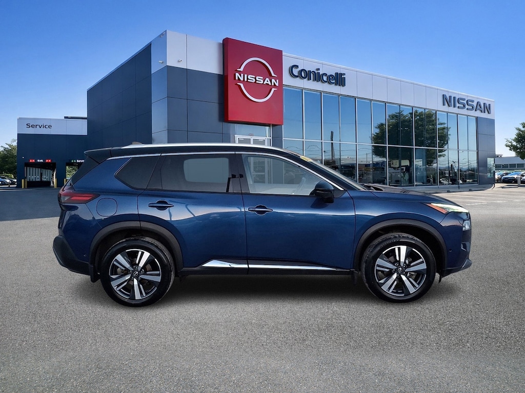 AWD, CarFax One Owner! This Nissan Rogue is CERTIFIED! Back-up Camera, Bluetooth, This 2023 Nissan Rogue SL, has a great Caspian Blue Metallic/Super Black exterior, and a clean Light Gray interior! Heated Seats, Multi-Zone Air Conditioning, Auto Climate Control, Leather Steering Wheel Satellite Radio, Steering Wheel Controls, Sunroof/Moonroof, Aux Audio Input, Seating, Automatic Headlights Keyless Start Parking Sensors AM/FM Radio Rear Spoiler, Premium Sound System This Nissan Rogue gets great fuel economy with over 34.0 MPG on the highway! Park Distance Control Turbocharged, Stability Control, ABS Brakes Satellite Radio Power Lift Gate Call to confirm availability and schedule a no-obligation test drive! We are located at 1222 Ridge Pike, Conshohocken, PA 19428.