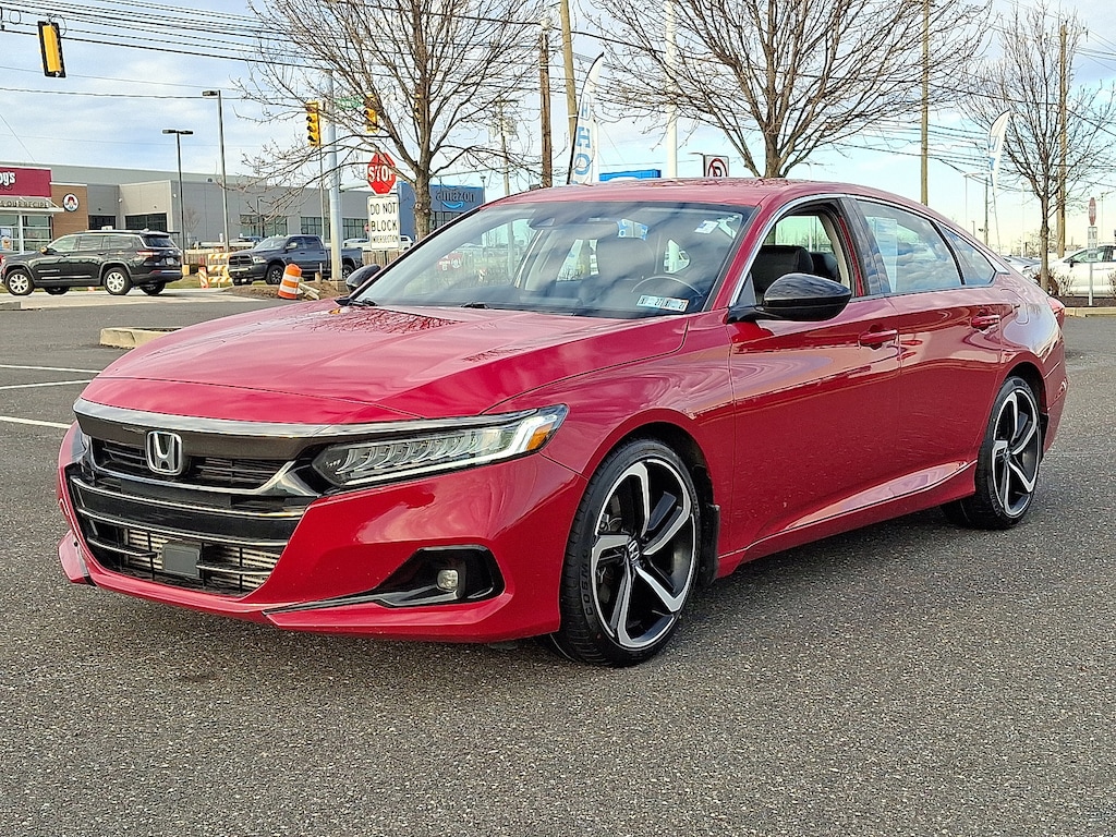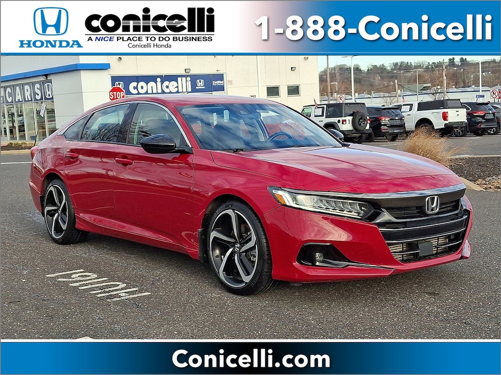 Back-up Camera, Bluetooth, This 2021 Honda Accord Sedan Sport SE, has a great San Marino Red exterior, and a clean Black interior! Heated Seats, Multi-Zone Air Conditioning, Auto Climate Control, Leather Steering Wheel Steering Wheel Controls, Aux Audio Input, Seating, Automatic Headlights Keyless Start AM/FM Radio Rear Spoiler, This Honda Accord Sedan gets great fuel economy with over 35.0 MPG on the highway! Turbocharged, Stability Control, ABS Brakes Front Wheel Drive Call to confirm availability and schedule a no-obligation test drive! We are located at 1100 Ridge Pike, Conshohocken, PA 19428.